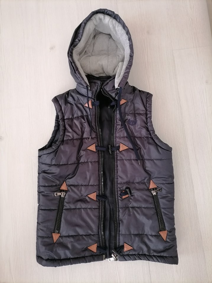 Gri Kapüşonlu Fermuarlı Erkek Yelek