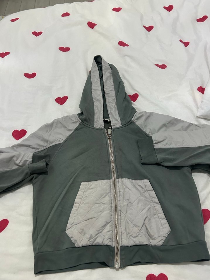Gri Kapüşonlu Fermuarlı Kadın Ceket