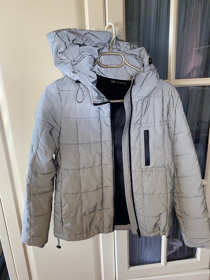 Gri Kapüşonlu Fermuarlı Kadın Kışlık Mont