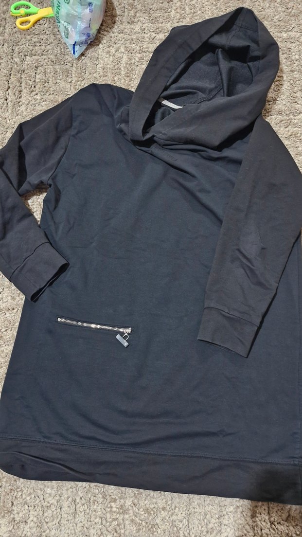 Gri renkte, kapüşonlu ve uzun kollu kadın sweatshirtü. Rahat kesim ve orta uzunlukta, önünde fermuarlı cep bulunmaktadır. Yumuşak ve sıcak dokulu kumaştan üretilmiştir. allday marka M bedene kadar olur