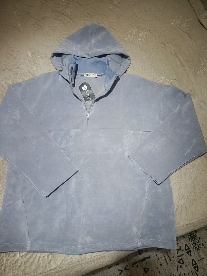Yumuşak ve sıcak kumaştan yapılmış, fermuarlı gri kapüşonlu bol kesim sweatshirt. Uzun kollu ve normal boyda, rahat kullanım için uygun.