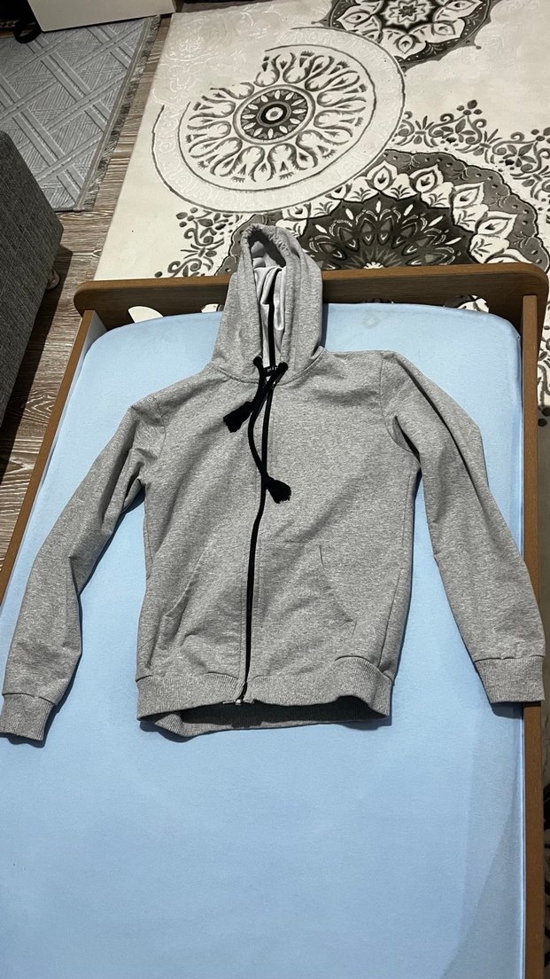 Gri renkli, fermuarlı ve kapüşonlu kadın sweatshirtü, uzun kollu ve dar kesimdir. Yumuşak kumaştan üretilmiş, günlük ve rahat kullanıma uygundur.