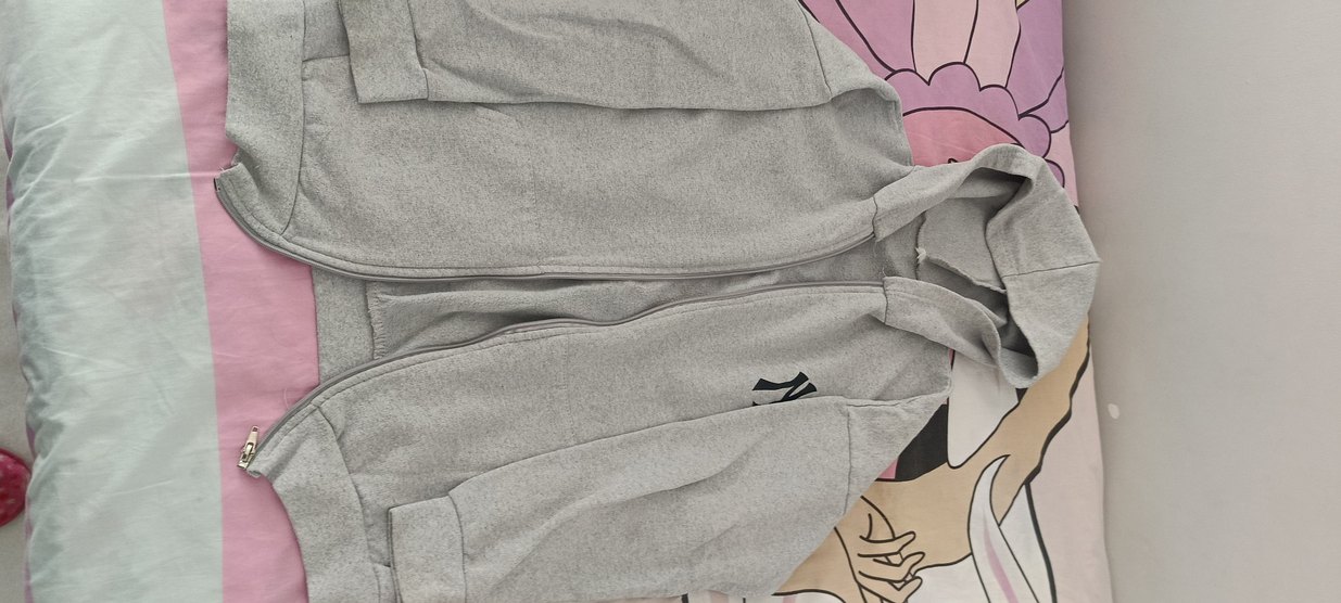 Gri kapüşonlu, fermuarlı, uzun kollu ve bol kesim kadın sweatshirtü, yumuşak ve sıcak kumaştan üretilmiştir. Rahat sokak stili için uygundur.