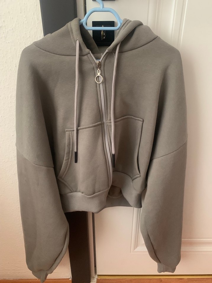 Gri Kapüşonlu içi şardonlu Fermuarlı Kadın Sweatshirt