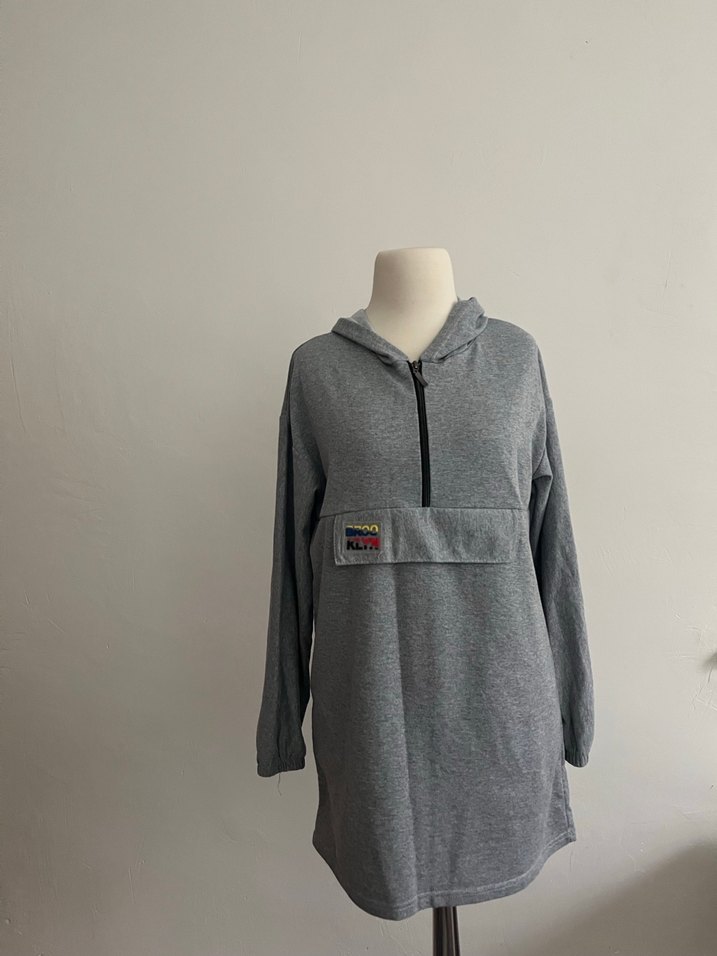 Gri renkli, kapüşonlu ve fermuarlı kadın sweatshirtü. Rahat kesimi ve midi boyu ile günlük sokak stiline uygun, yumuşak ve sıcak kumaştan üretilmiştir. Ön cebinde işlevsellik sağlar.