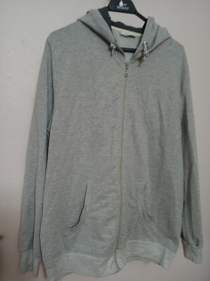 Gri renkte, kapüşonlu ve fermuarlı kadın sweatshirtü. Uzun kollu, bol kesim ve yumuşak, sıcak dokulu kumaştan üretilmiştir. Rahat ve gündelik kullanım için uygundur.