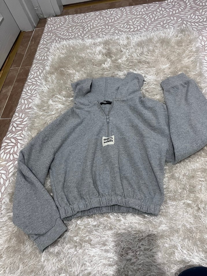 Yumuşak ve sıcak kumaştan, kapüşonlu ve fermuarlı kadın sweatshirt. Uzun kollu, bol kesim, gri renkte, günlük rahat kullanıma uygun. ️