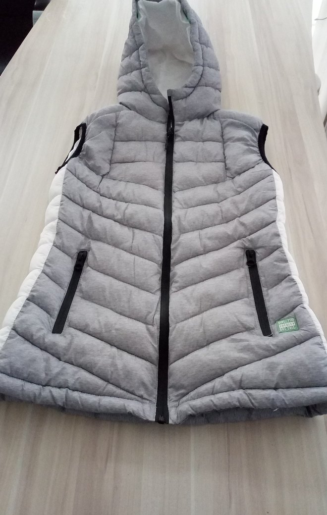 Gri renkte, kapüşonlu ve fermuarlı, kolyeği olmayan kadın yeleği. İnce ve midi boyda, rahat ve sıcak kumaştan üretilmiştir. Trendy günlük kullanım için uygun.