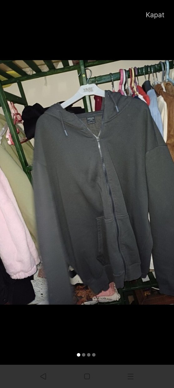 Gri Kapüşonlu Fermuarlı Rahat Sweatshirt 1kez kullanildi