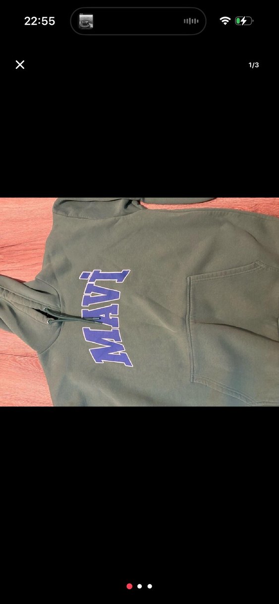 Yumuşak fleece kumaştan yapılmış, fermuarlı ve kapüşonlu, 'MAVI' baskılı gri fitted sweatshirt, günlük kullanım için sokak stili sunar.