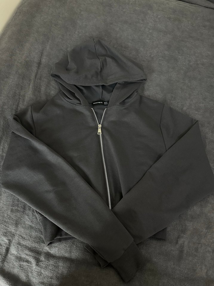 Yumuşak ve sıcak kumaştan yapılmış, kapüşonlu ve fermuarlı gri fitted sweatshirt. Uzun kollu, normal boyda ve desensiz tasarıma sahiptir.