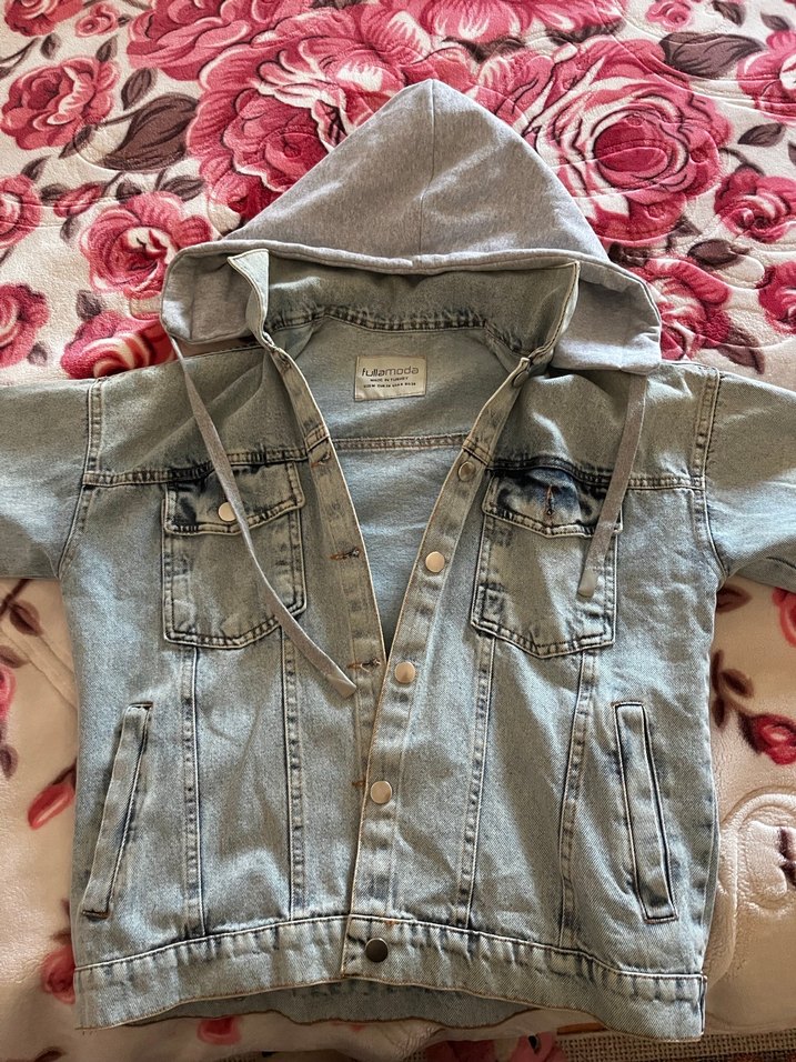 Gri Kapüşonlu Kadın Denim Ceket