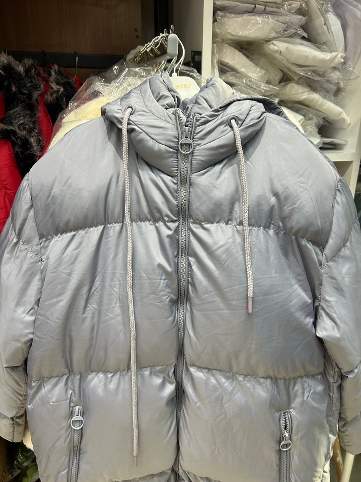 Gri renkte, yüksek yakalı ve fermuarlı önden kapanışlı, midi boyda, sentetik kumaştan yapılmış kadın kışlık mont. Rahat ve şık, sokak stiline uygun bir parça.