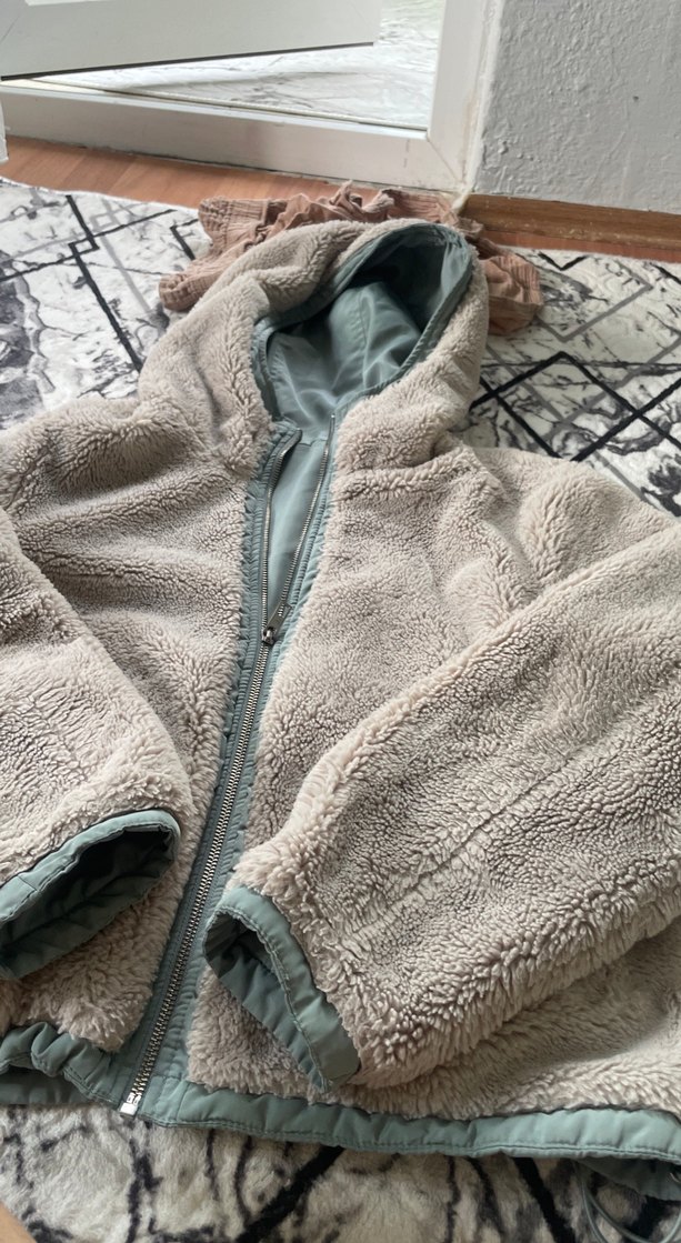 Kadınlar için gri renkte, kapüşonlu ve peluş dokulu uzun kollu, bol kesim rahat bir kış kabanı. Sokak modasına uygun ve günlük kullanıma uygun. ❄️