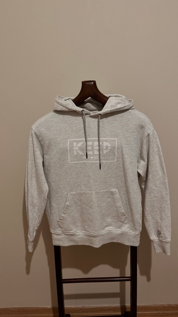 Gri renkli, yuvarlak yakalı, kapüşonlu ve uzun kollu kadın sweatshirtü, yumuşak ve sıcak kumaştan üretilmiştir. Rahat ve bol kesimdir, önünde cep ve ince baskı detayı vardır. Günlük kullanıma uygundur.