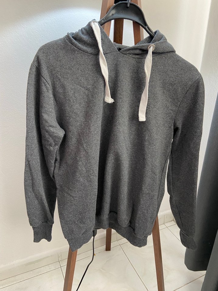 Gri kapüşonlu sweatshirt, uzun kollu ve bol kesimdir. Yumuşak ve sıcak kumaştan yapılmıştır, günlük kullanıma uygundur. Desensiz ve sade tasarımıyla rahat bir şıklık sunar.