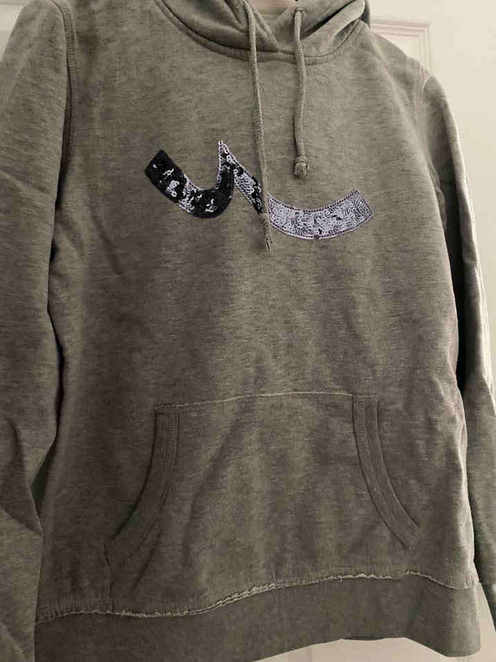 Yumuşak ve sıcak kumaştan, bol kesim gri kapüşonlu sweatshirt, yılan desenli detay ve ön cepli.