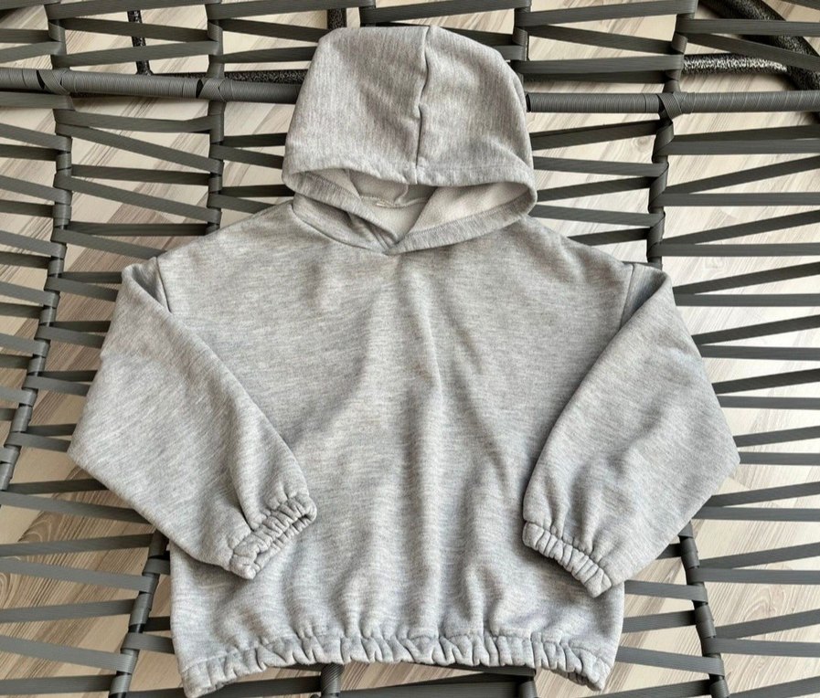 Gevşek kesim ve uzun kollu, lastikli manşetli kadın sweatshirt. Yumuşak fleece kumaştan, yuvarlak yaka ve düz gri renkte, günlük kullanıma uygun. Kapüşonlu ve rahat sokak stili sunar.