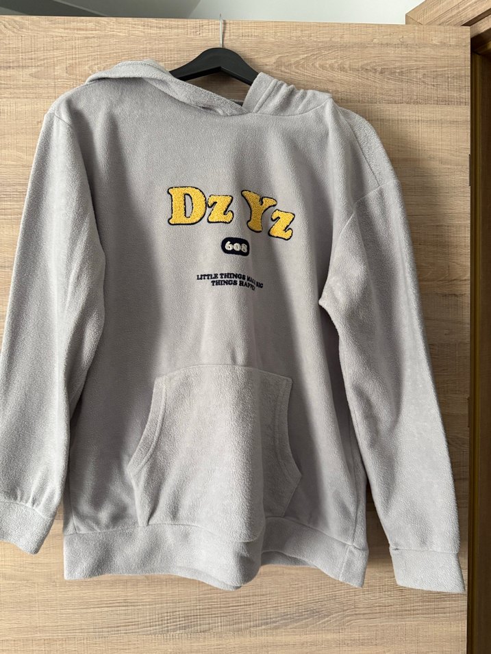 Gri renkte, uzun kollu, kapüşonlu ve bol kesim kadın sweatshirtü. "Dz Yz" baskılı ve ön cepli, yumuşak ve sıcak kumaştan üretilmiştir. ✨