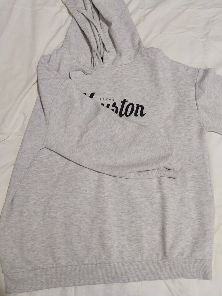 Pamuklu kumaştan, bol kesim ve uzun kollu gri kapüşonlu sweatshirt. Üzerinde 'Houston' baskısı bulunur, rahat ve şık bir görünüm sağlar.