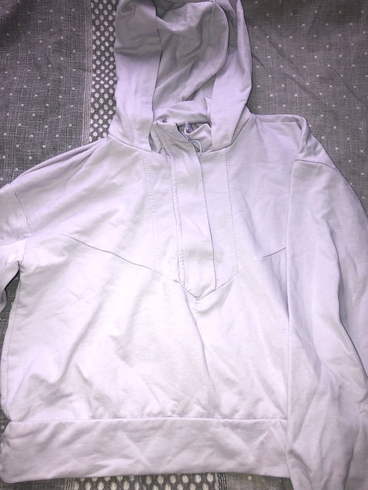 Gri renkte, kapüşonlu ve uzun kollu, rahat sentetik kumaştan yapılmış, midi boy ve fit kesimli kadın sweatshirtü. Günlük kullanıma uygun sokak stili.