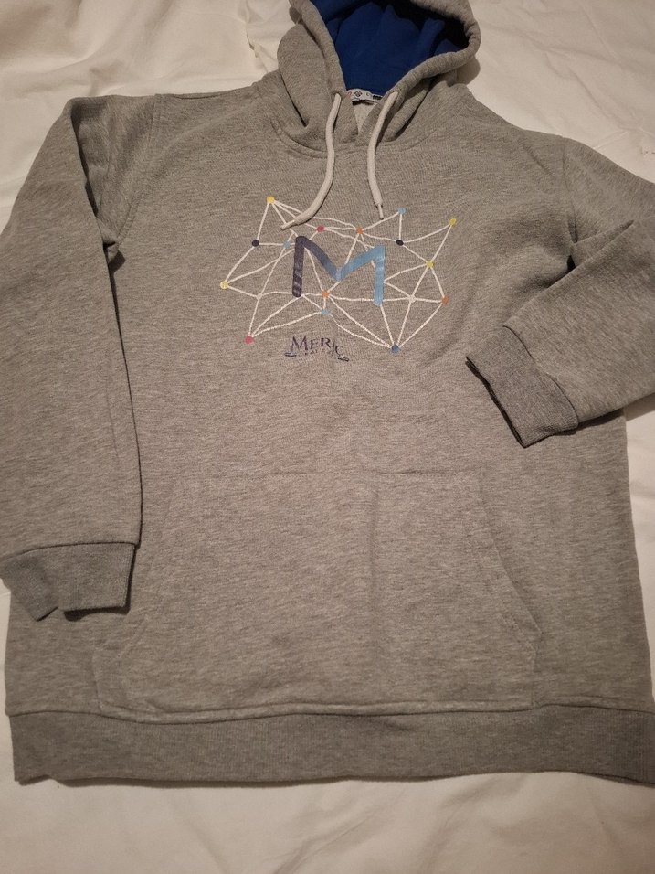 Gri renkte, uzun kollu, kapüşonlu sweatshirtü. Meriç Koleji kıyafeti