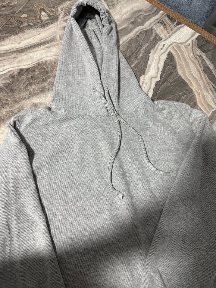Kadınlar için gri kapüşonlu sweatshirt, uzun kollu ve rahat kesimlidir. Yumuşak, sıcak kumaştan yapılmış, desensiz ve günlük kullanıma uygundur.