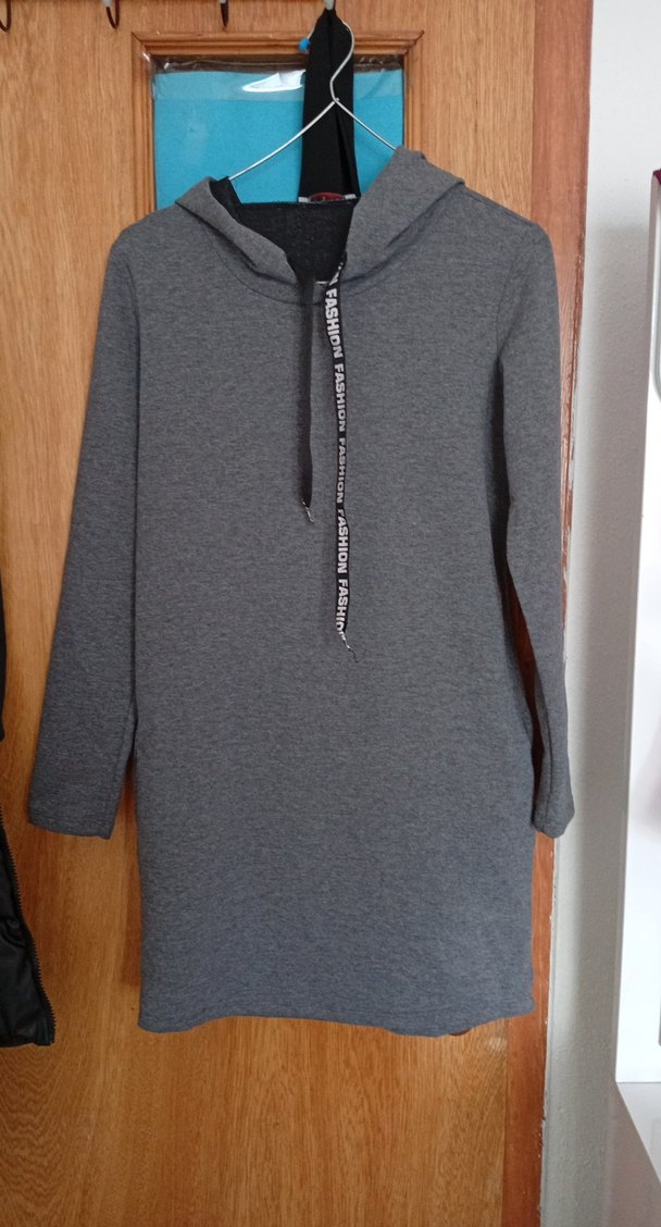 Gri Kapüşonlu Kadın Sweatshirt Elbise