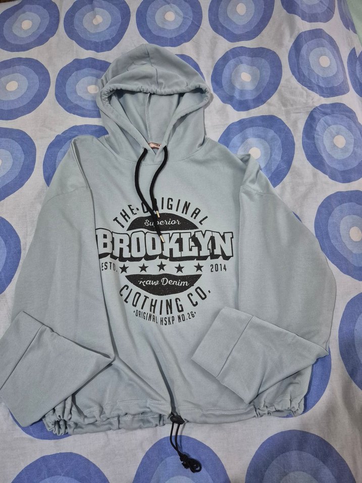 Önü baskılı, bol kesim gri kapüşonlu sweatshirt. Alt kısmında fırfır detayları bulunur. Yumuşak ve sıcak kumaştan üretilmiştir.