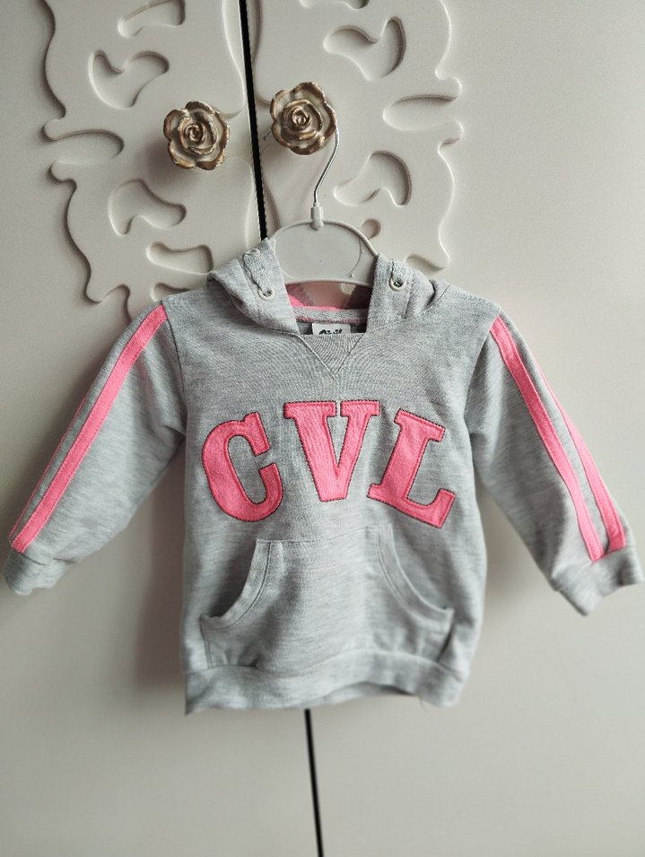 Gri yumuşak kumaştan, uzun kollu ve bisiklet yaka kız çocuk eşofman takımı. Pembe baskılı detaylar ve cırt cırtlı kapanışlı, rahat sokak stili için uygun.