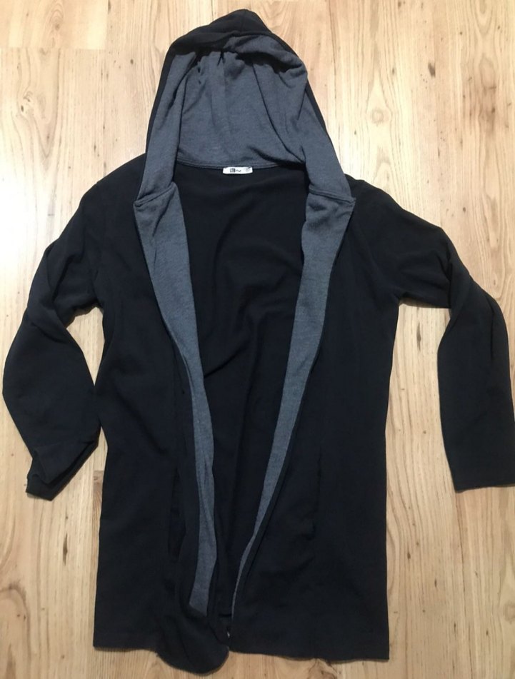 Gri renkte, uzun kollu ve kapüşonlu midi boyda rahat kesim ceket. Yumuşak ve sıcak kumaştan, sade ve günlük kullanıma uygun. Boy 80 bucuk cm, en 49 buçuk cm, kol boyu 61 buçuk cm