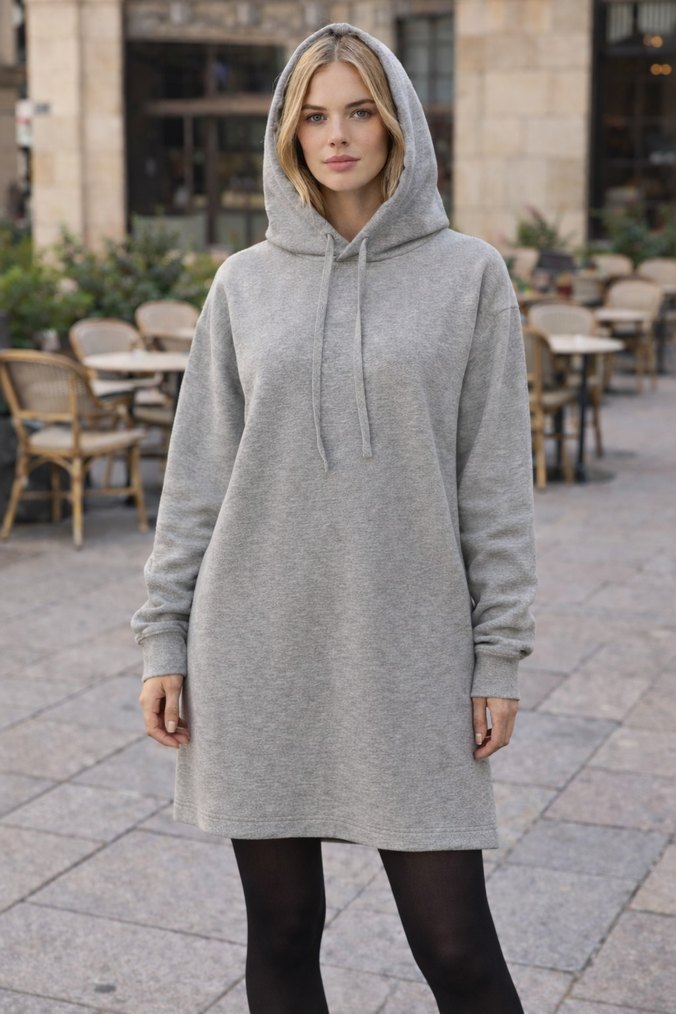 Gri midi sweatshirt, bol kesim, uzun kollu ve yuvarlak yaka. Yumuşak ve sıcak kumaştan, günlük kullanıma uygun rahat şıklık sunar. defolu yok az giyinildi