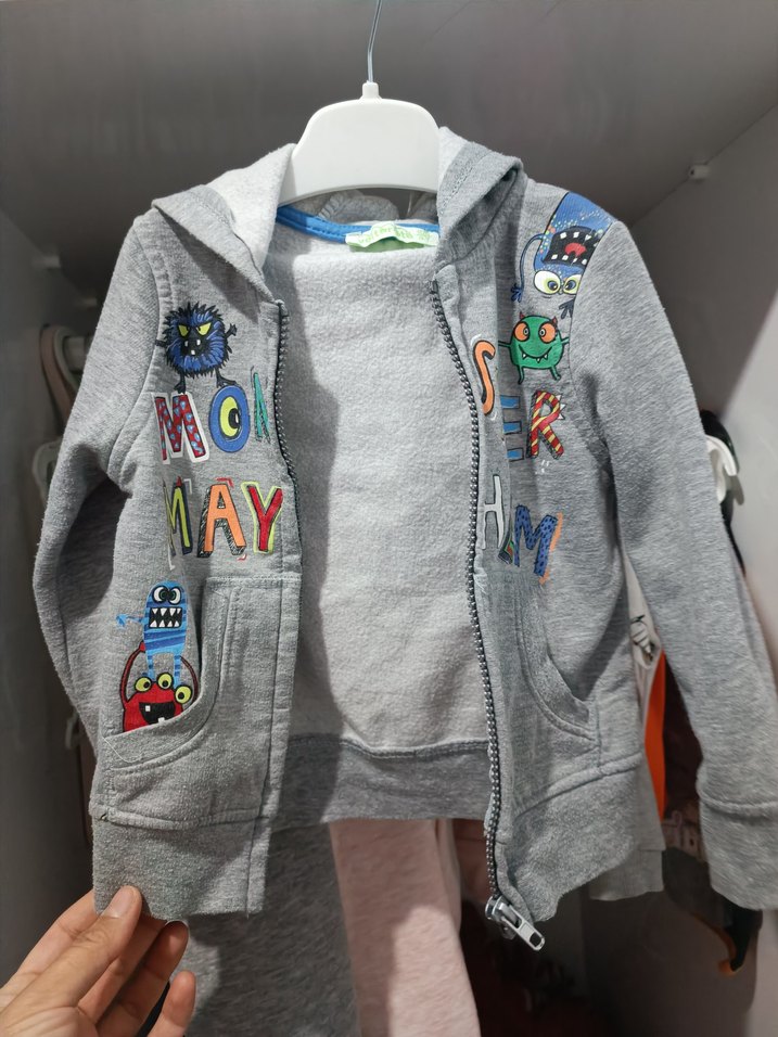 Gri renkli, kapüşonlu ve fermuarlı erkek sweatshirtü. Renkli nakış detayları ve rahat kesimiyle yumuşak kumaştan üretilmiştir.