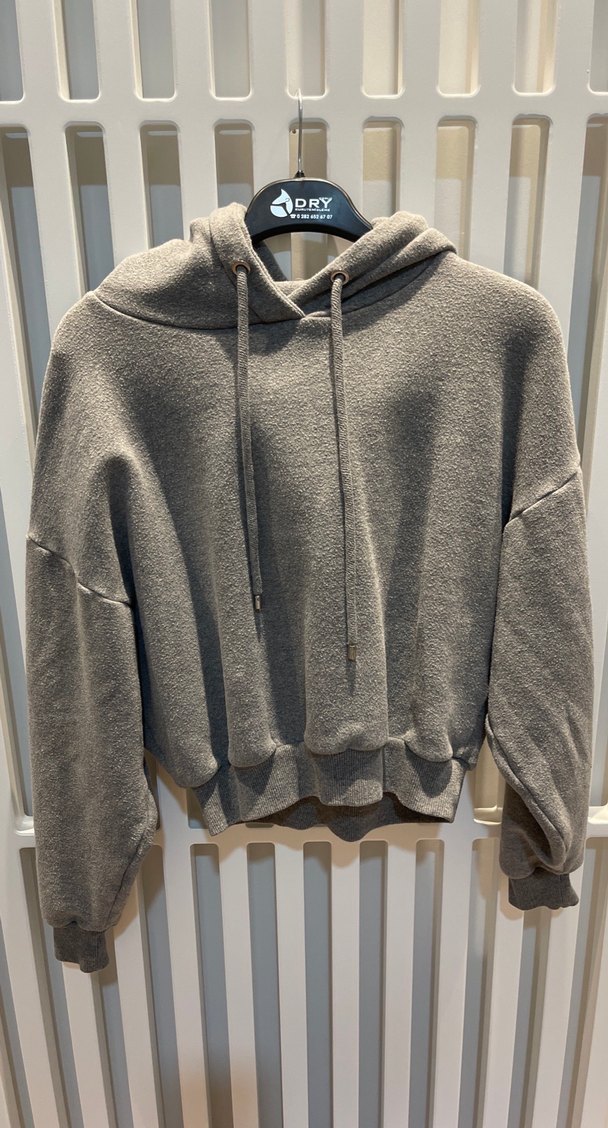 Gri Kapüşonlu Örme Kadın Sweatshirt