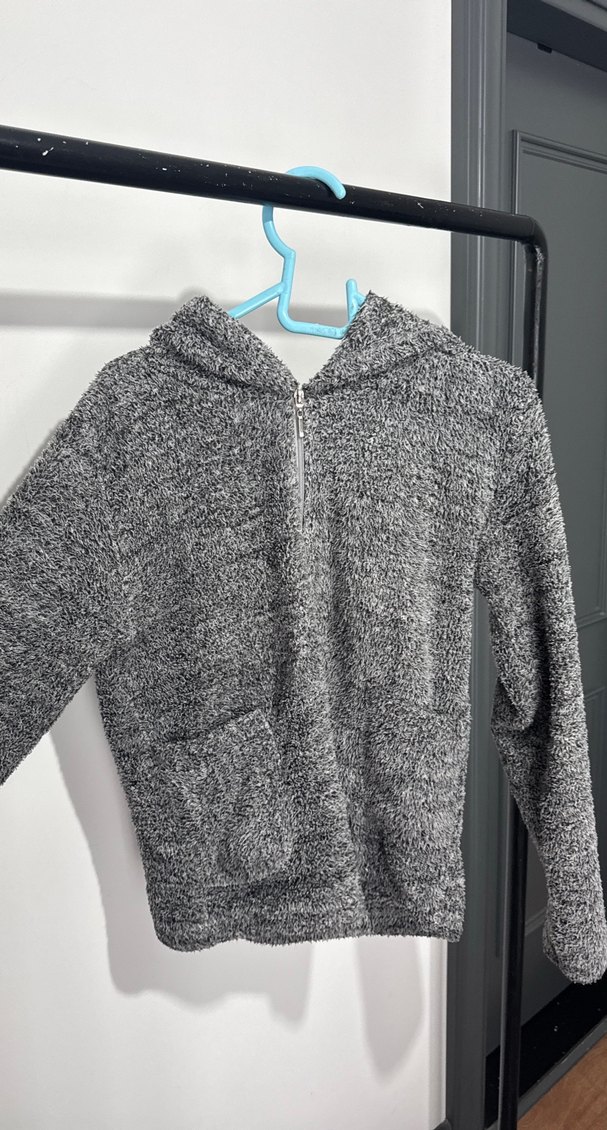 Gri kapüşonlu peluş hırka bedeni xl yazıyor fakat kalıbı küçük