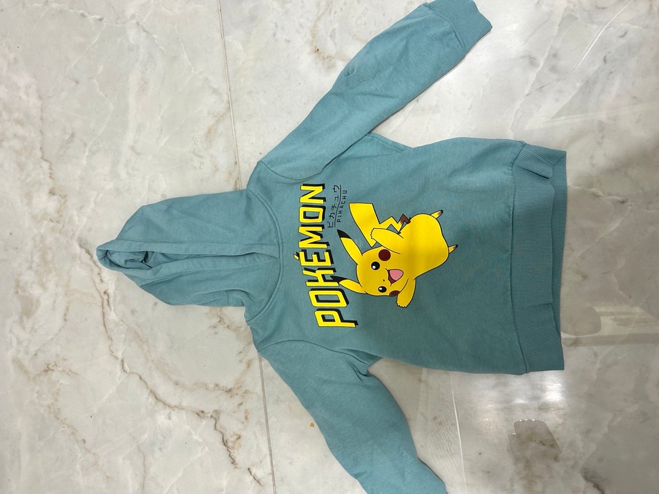 Uzun kollu, kapüşonlu ve fermuarlı erkek sweatshirtü. Pastel gri renkli, önünde baskılı Pokemon deseni bulunur. Yumuşak polar kumaştan yapılmıştır.