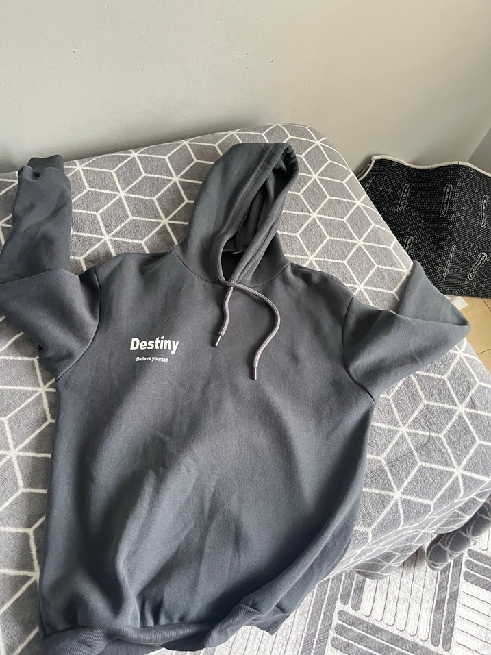 Gri kapüşonlu sweatshirt, rahat kesimi ve uzun kollu tasarımıyla yumuşak sentetik kumaştan üretilmiştir. "Destiny" baskısı ile zahmetsiz şıklık sunar. Günlük kullanım için uygundur.