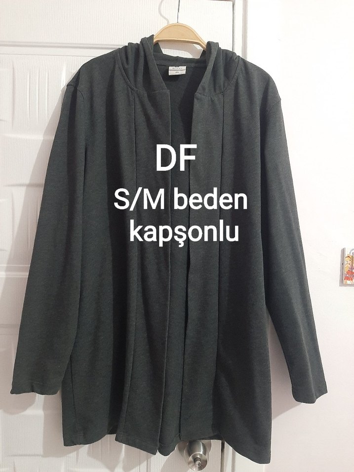 Gri renkte, kapüşonlu ve uzun kollu Yumuşak sentetik kumaştan, günlük kullanım için uygun S/M beden.