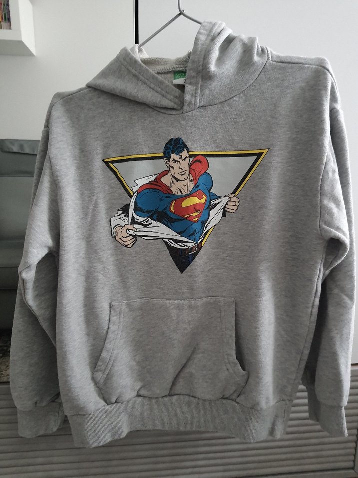 Gri Kapüşonlu Superman Baskılı Sweatshirt
