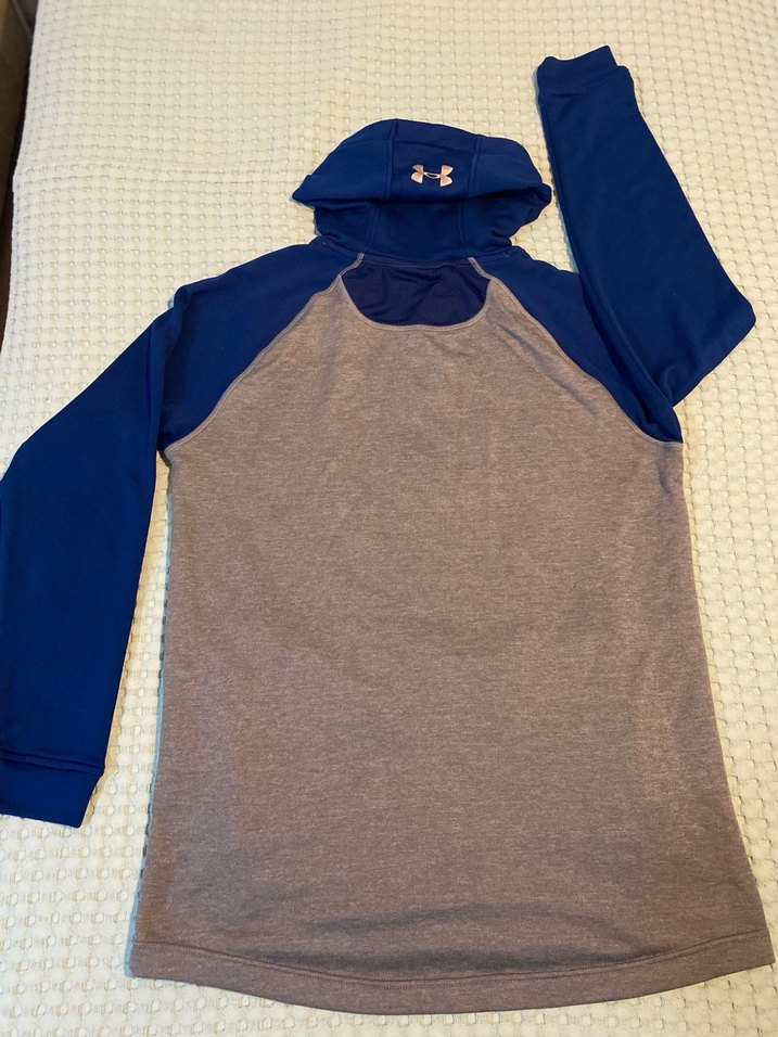 gri ve lacivert renklerde, kapüşonlu ve uzun kollu, yumuşak ve sıcak kumaştan sweatshirt. Rahat sokak stili için uygundur.