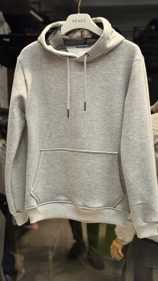 Gri Kapüşonlu Sweatshirt /Tüm Bedenler Mevcut