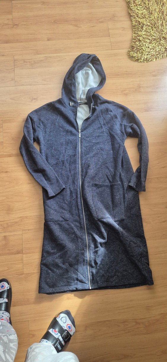 Simli Gri renkte, uzun Fermuarlı, kapüşonlu ve uzun kolludur. İki ön cepli, rahat sokak stili için uygundur.