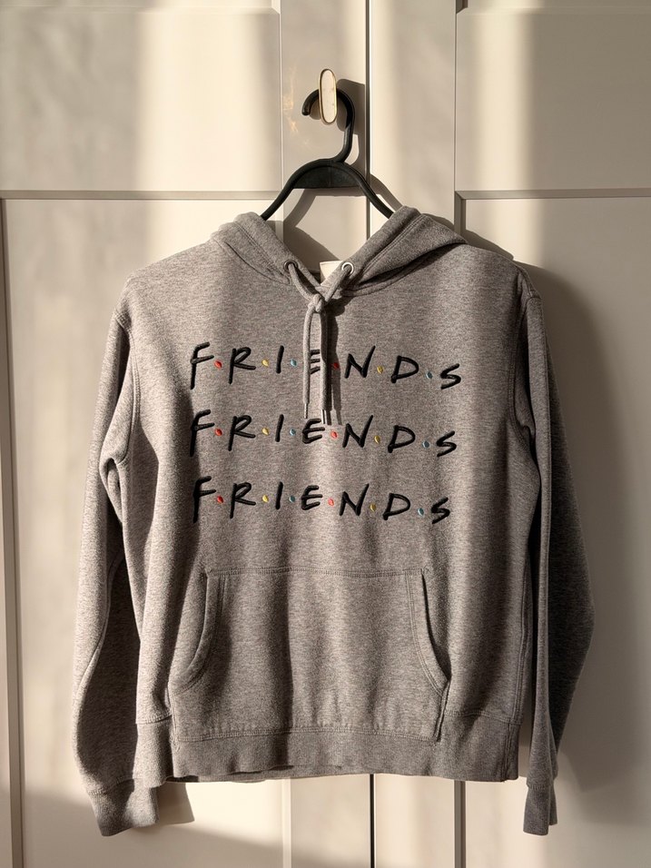 Gri, uzun kollu, bisiklet yakalı, regular kesim sweatshirt. Önden cepli ve 'FRIENDS' baskılı, yumuşak örme kumaştan yapılmıştır. Defosuz.
