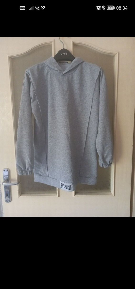 Gri renkte, uzun kollu ve yuvarlak yakalı, rahat kesim midi uzunluğunda sweatshirt. Yumuşak ve sıcak kumaştan, günlük kullanıma uygun, zahmetsiz şıklık sunar.