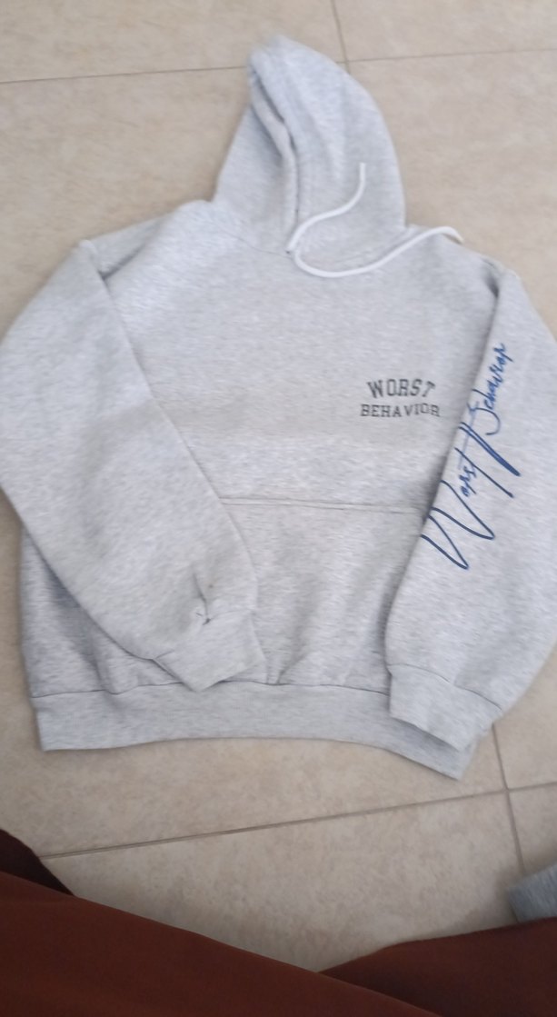 Gri, uzun kollu, kapüşonlu sweatshirt. Ön ve kol kısmında "BEHAVIOR WORST" baskısı bulunur. Rahat ve sıcak dokusu ile günlük kullanıma uygundur.