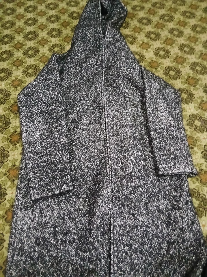 Gri renkli, örgü uzun kaban, kapüşon ve uzun kollu, bol kesim olup yumuşak ve sıcak dokusuyla rahat sokak stiline uygundur. Günlük kullanıma elverişlidir.