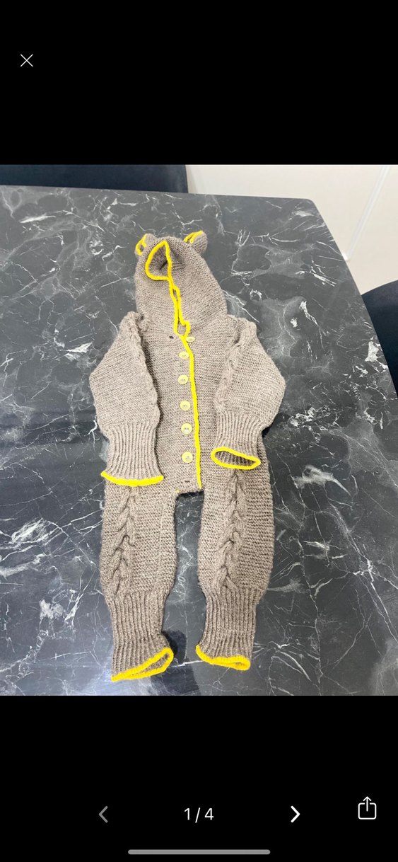 Ürün el emeğidir. Oğlum alerjik olduğu için hiç giymedi. 6-12 ay olur.