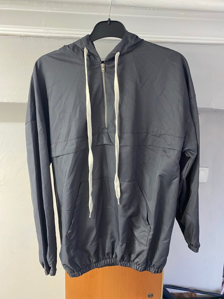 Gri renkte, yüksek yakalı ve yarım fermuarlı kapüşonlu erkek yağmurluğudur. Uzun kollu, bol kesim ve lastikli etek uçlu, sentetik kumaştan üretilmiştir. ️
