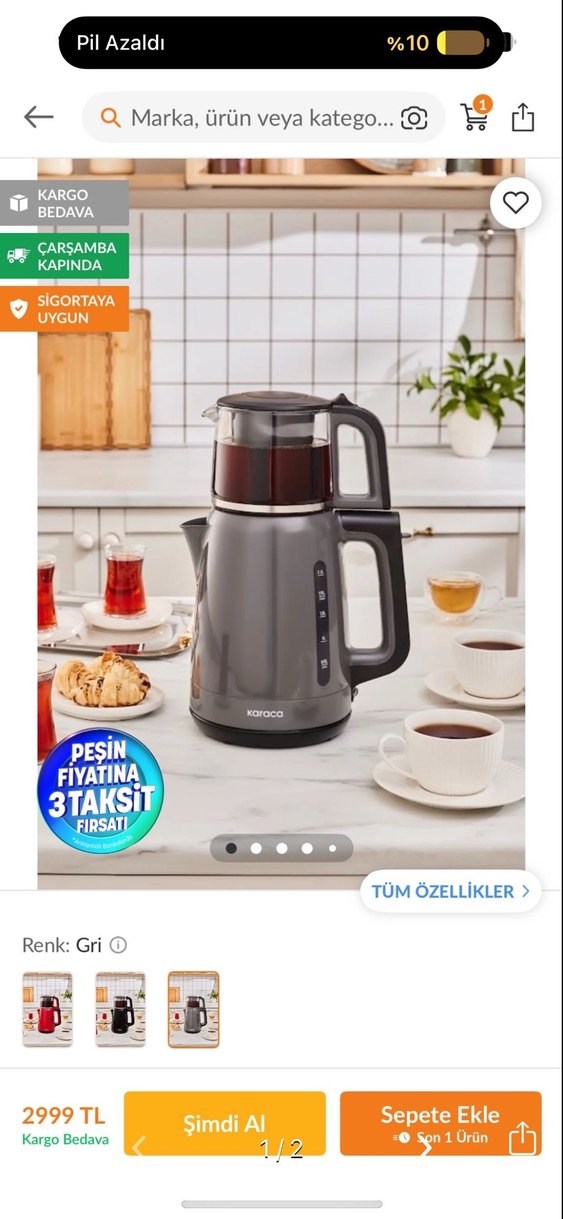 Sıfır. Hiç kullanılmadı hediye geldi bende zaten vardı o yüzden satıyorum hiçbir sorunu yoktur. İnternetteki fiyatı üç bin - Karaca orijinal çay makinesi çaydanlık gri çay