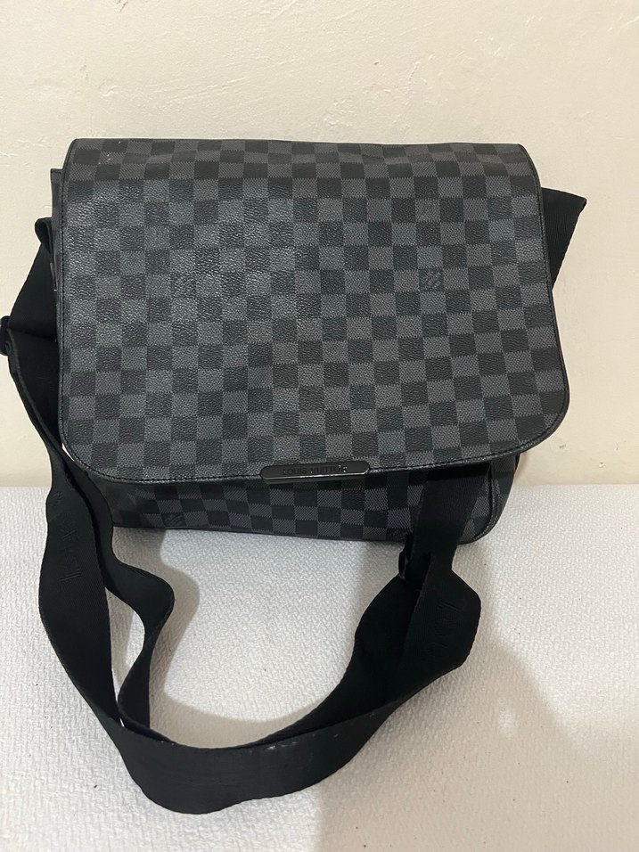 Gri deri kapaklı ve kare desenli, tokalı unisex çapraz çanta. Günlük kullanıma uygun, trend sokak stiliyle uyumlu.